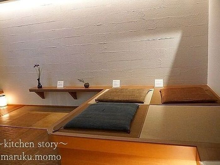 水の音を聞き、ちゃぶ台で、好きな飲み物を飲みます。
