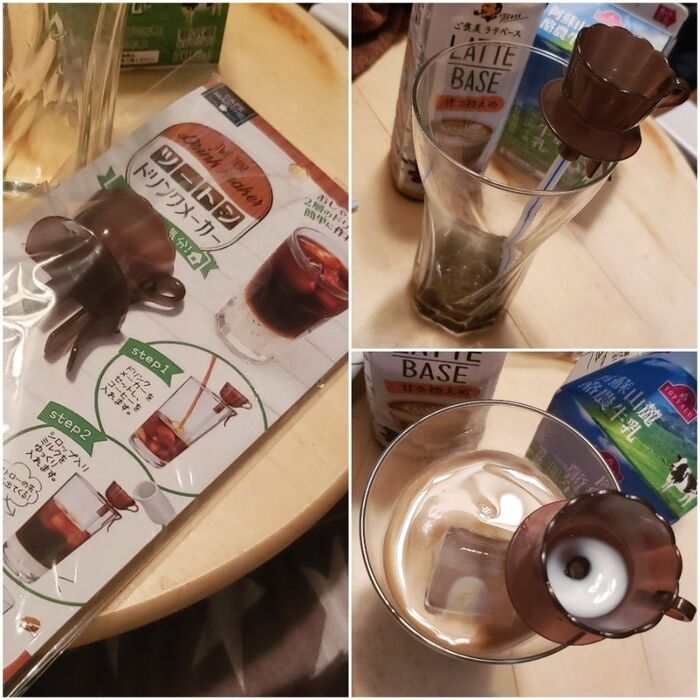 おもしろがって買って未使用だったDAISOのツートーンドリンクメーカーでブラックタピオカラテを作ってみましたが、、不器用勃発か、比重の問題か、色が薄かったからか?何気に失敗の巻(笑)
