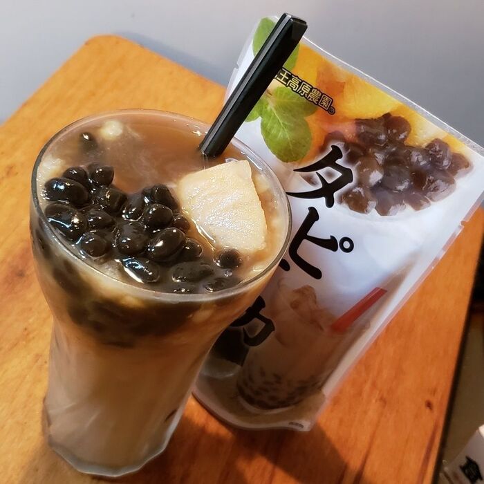 凍らせたミルクティーを氷かわりにした、タピオカ黒糖シロップミルクティー(笑)
