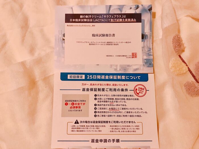 臨床実験報告書と返金保証書もありました。