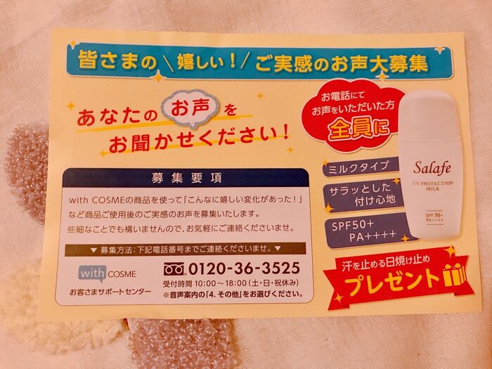 電話で乾燥を伝えるだけで『汗を止める日焼け止め』をプレゼントだそうです、1週間使ってみたら、電話してみようかな。