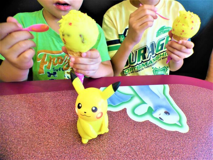 ピカチュウとサーティワンの期間限定アイス”ピカチュウの10まんボルト~フルーツミックス~”食べに行きました。こちらは、8月31日まで食べられますよ!!