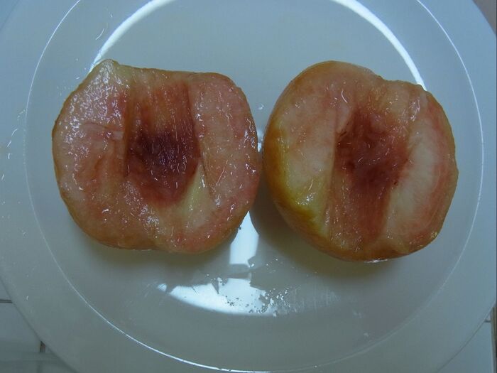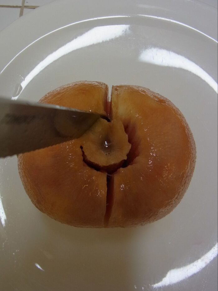 耐熱性の保存袋に入れてコンポートを作りました。シロップの分量が半分でできます。