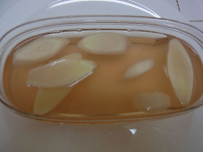 小鍋に取り分けたシロップと、薄切りにした生姜を入れ弱火にかけます。