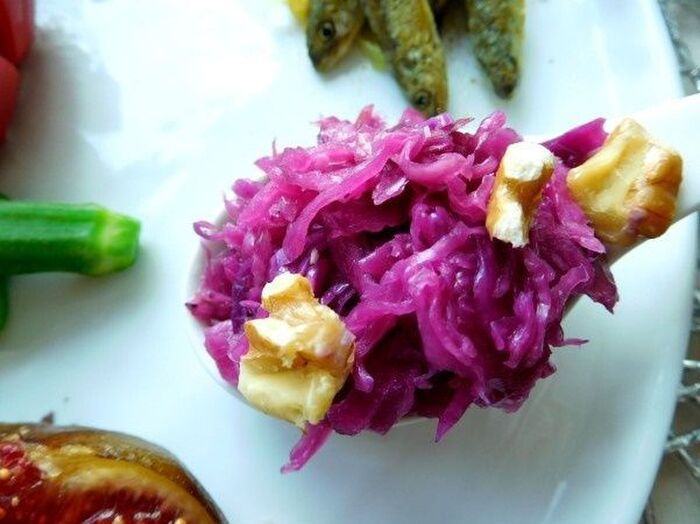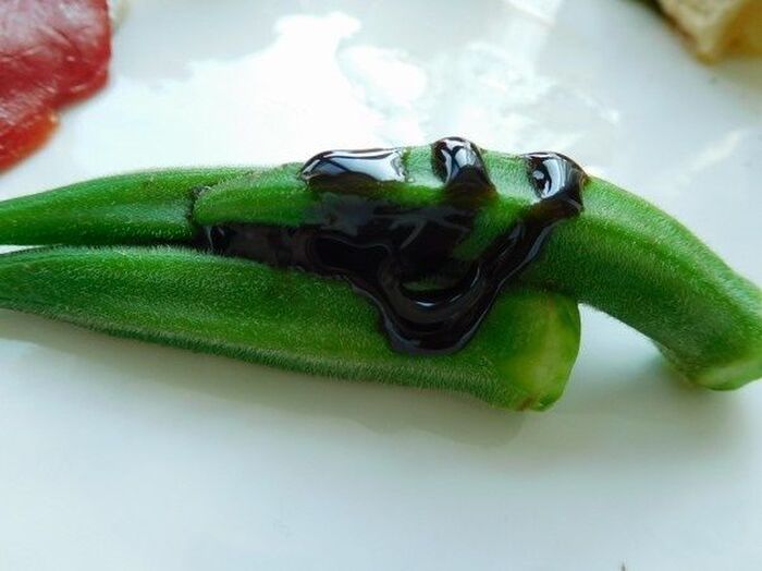 茹でたオクラにバルサミコ酢をたら~りとかけました。