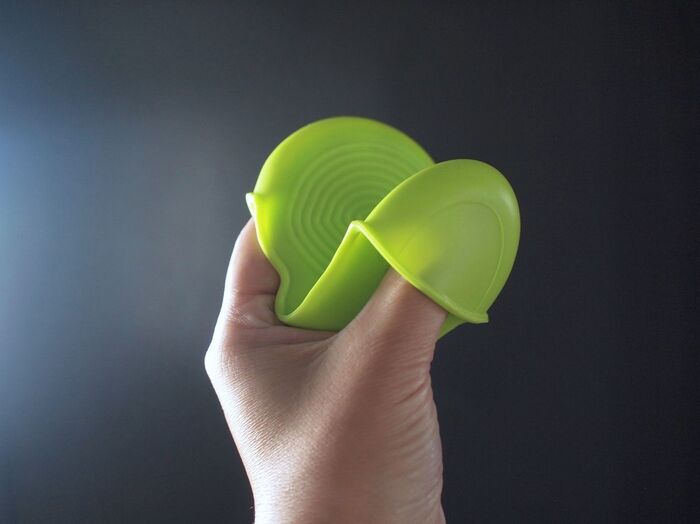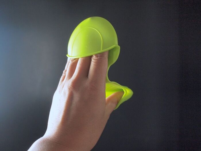 布のミトンとは違って、シリコン製だから、水がしみこんでくることがないからこその使いやすさです。