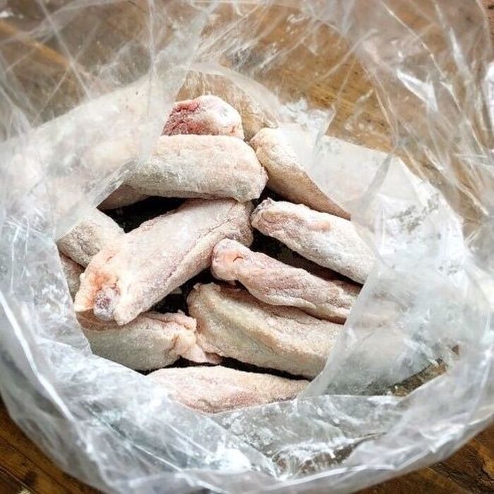 1.手羽中は骨に沿って包丁で一本切り込みを入れ、塩こしょうを振る。ポリ袋に手羽先と●を入れ、シャカシャカ振ってまぶす。
