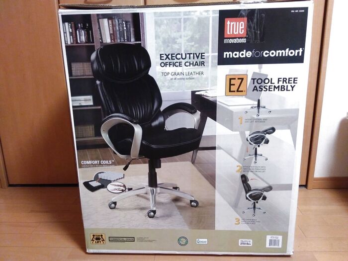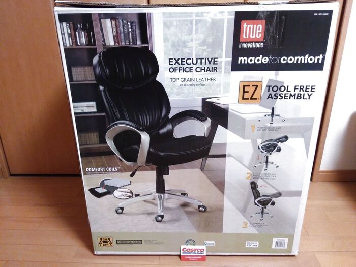 ということで、コストコのエグゼクティブチェアーを買ったときの写真を使って、徹底レビューしていきますね!