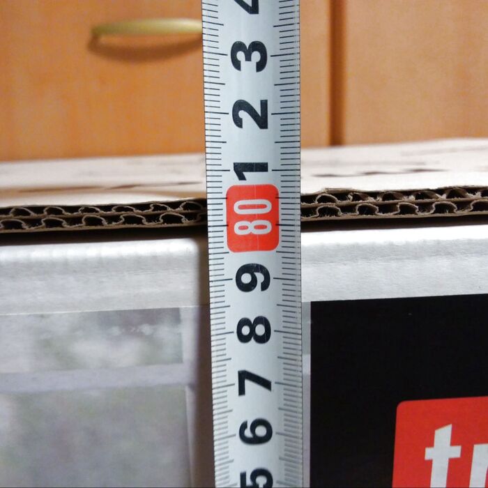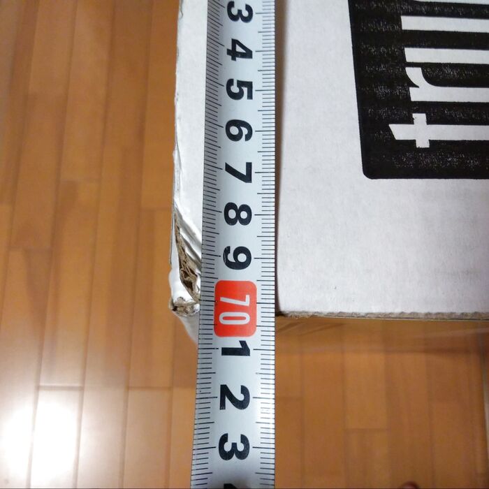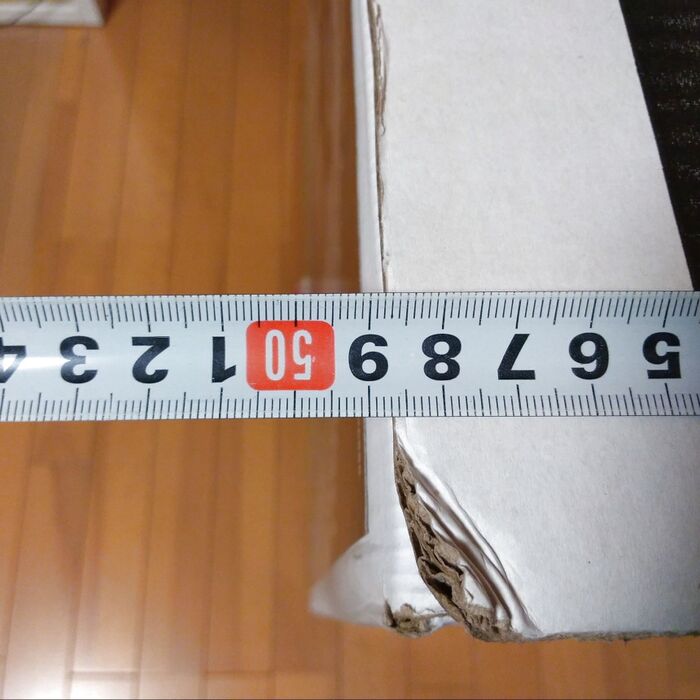 う~ん、箱がちょっとへこんでるけど、だいたい50cmくらいですかね~