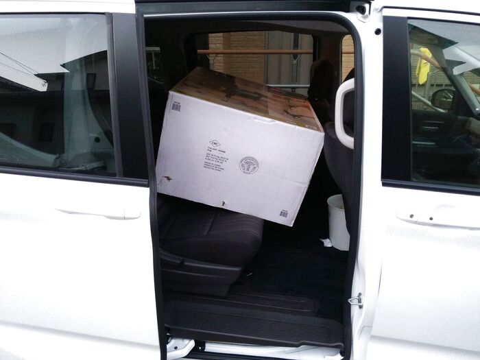 ちなみに、コストコ男子の車はホンダのフリードというミニバンなのですが、こんな感じで後部座席に積んでコストコから持って帰ってきました(笑)