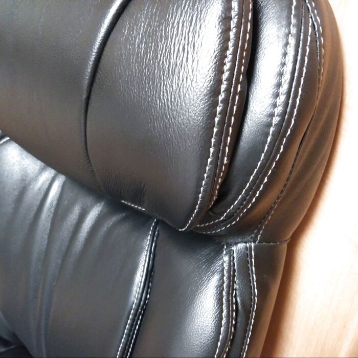 レザーの肌ざわりもいいし、なによりも座面と背もたれが大きくてゆったりしているので、体をささえてくれる~っていう安心感があります。