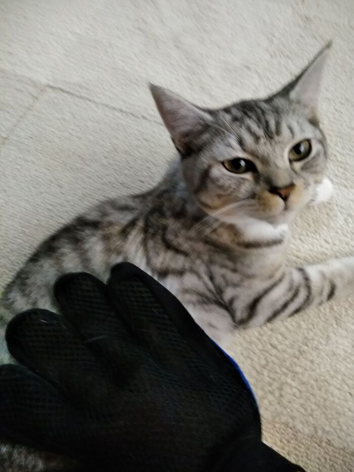 このグローブの良いところは、猫ちゃんだけでなく犬、うさぎなど毛のあるペット全般のケアにも使えて、お風呂でのシャンプーにも使えるというところです。