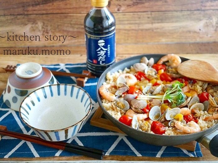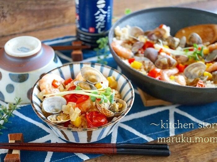 和風のパエリアは癖が無くお子様からおじいちゃんおばあちゃん世代~