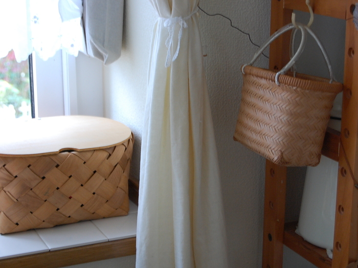 素敵なだけで、埃がたまってるのも嫌なので右の籠は100均で購入。