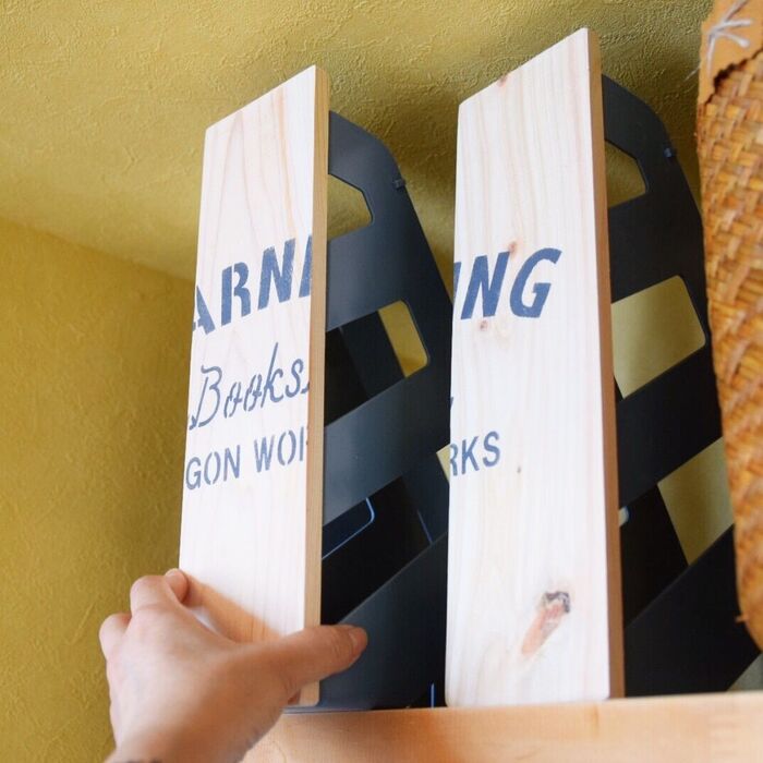 100均のファイルボックスを100均のヒノキ板を貼ってリメイクした本の収納。