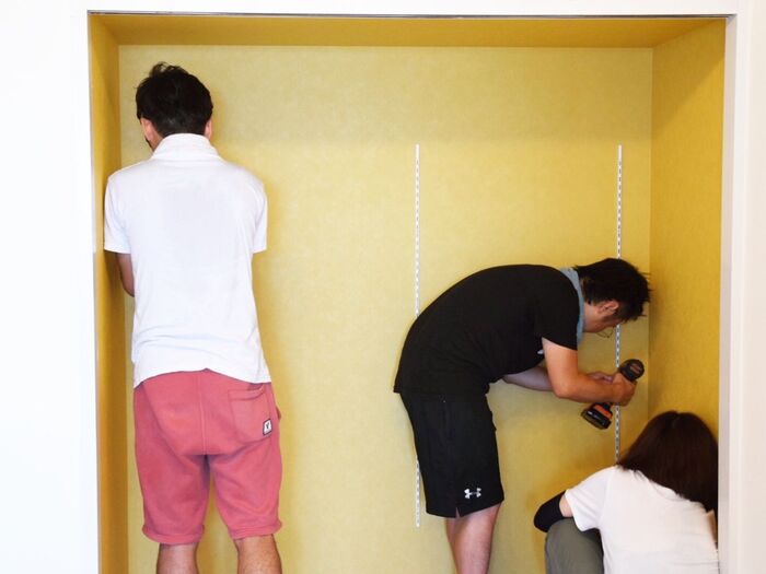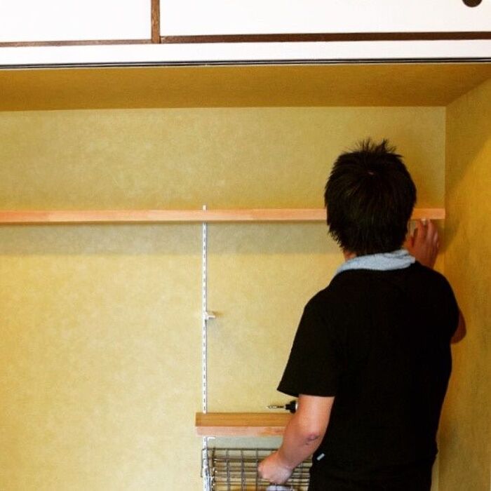 今回は基礎の工事は業者さんにお願いして、押入の中段を撤去してもらい、
