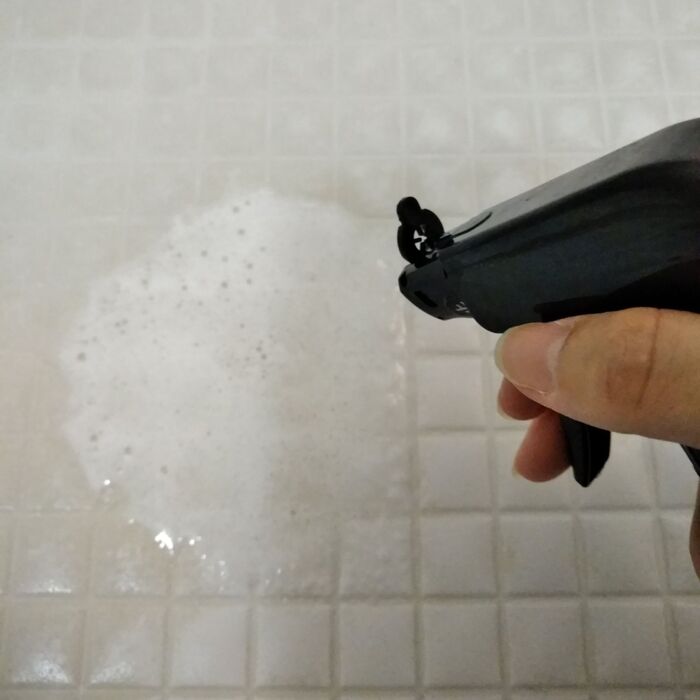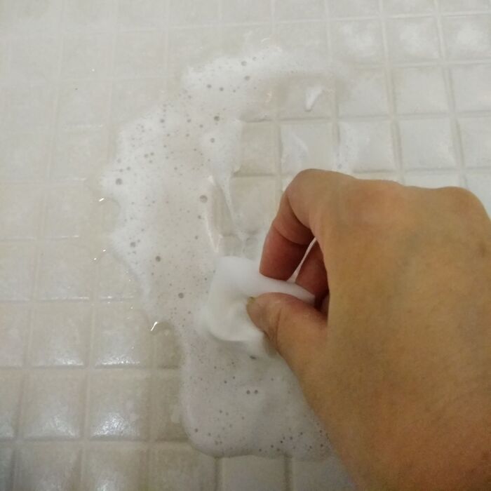 マジックソープと水を1:1で混ぜたものをスプレーして、メラミンスポンジでこすります。