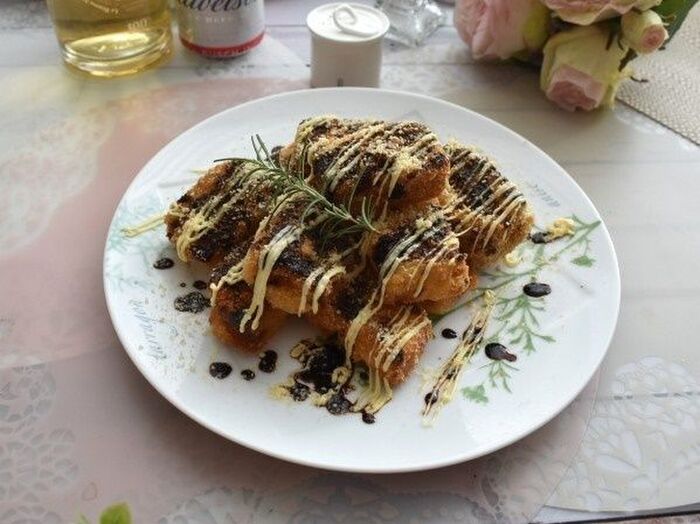 ★揚げてからふる粉チーズと ソースとマヨネーズでコクはばっちりです。