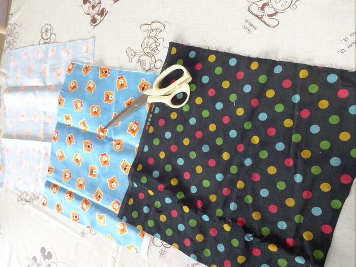 ①33㎝×26㎝ 2枚…写真 クマ柄(リュックの上部分の生地)