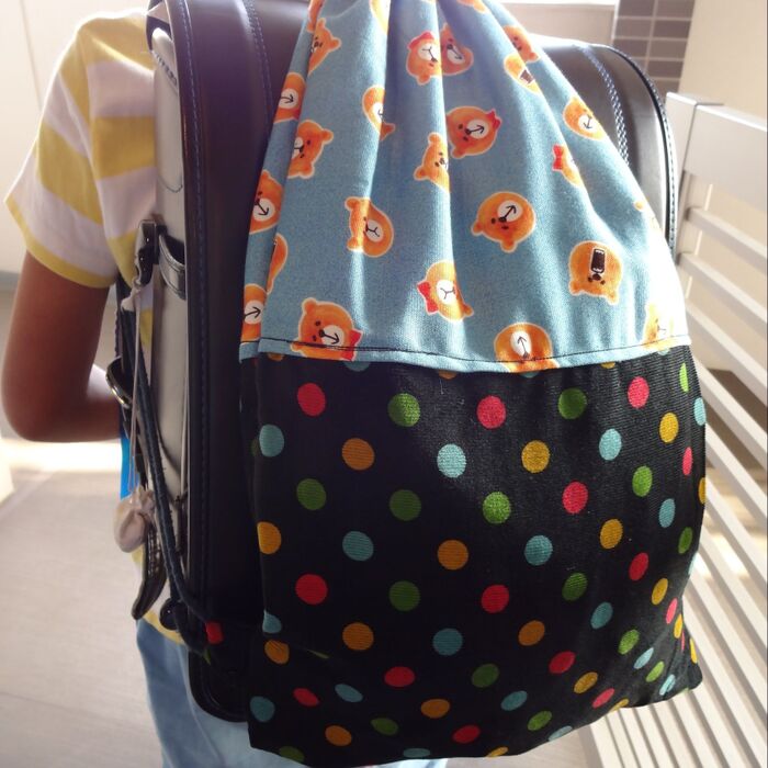 ②33㎝×45㎝ 1枚…写真 ドット柄(リュックの下部分の生地)