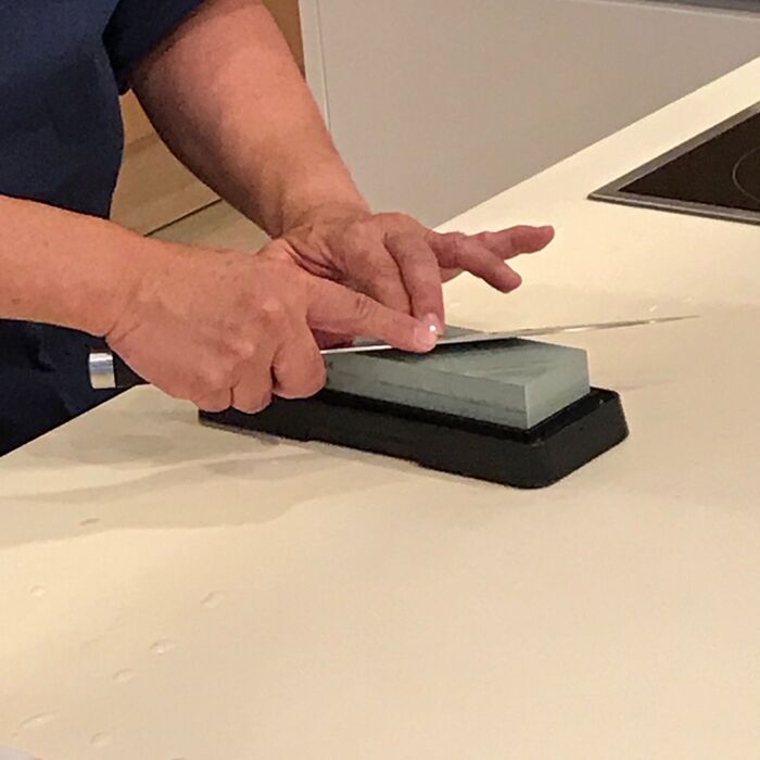 砥石をたての幅いっぱい使って動かすのがポイントです。