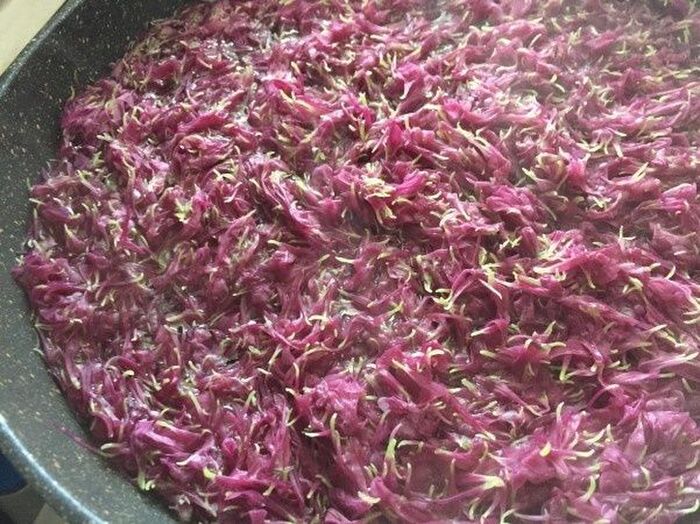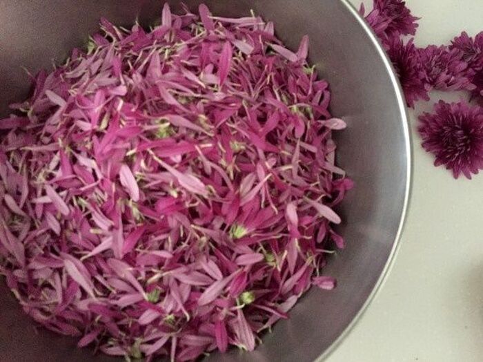 水を沸騰させ酢を入れ花びらを加え 花びらがふんわり浮かんでくるので