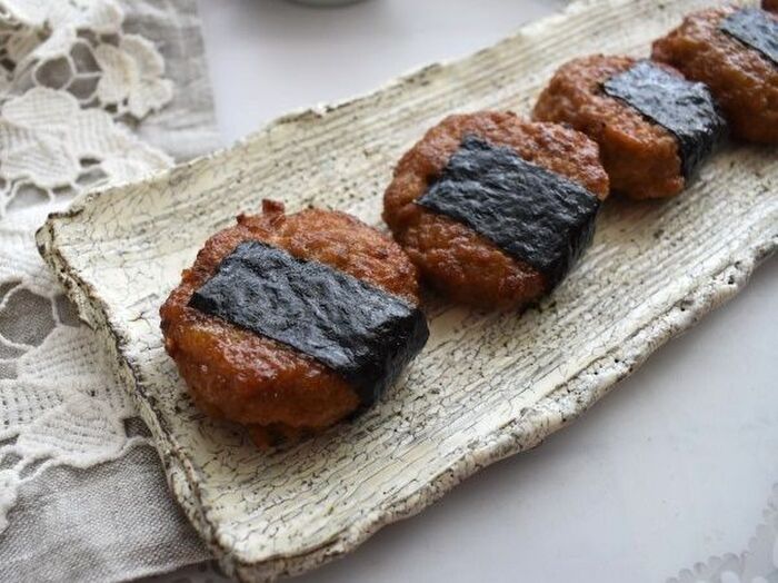 海苔を巻く前にタレを絡めます。