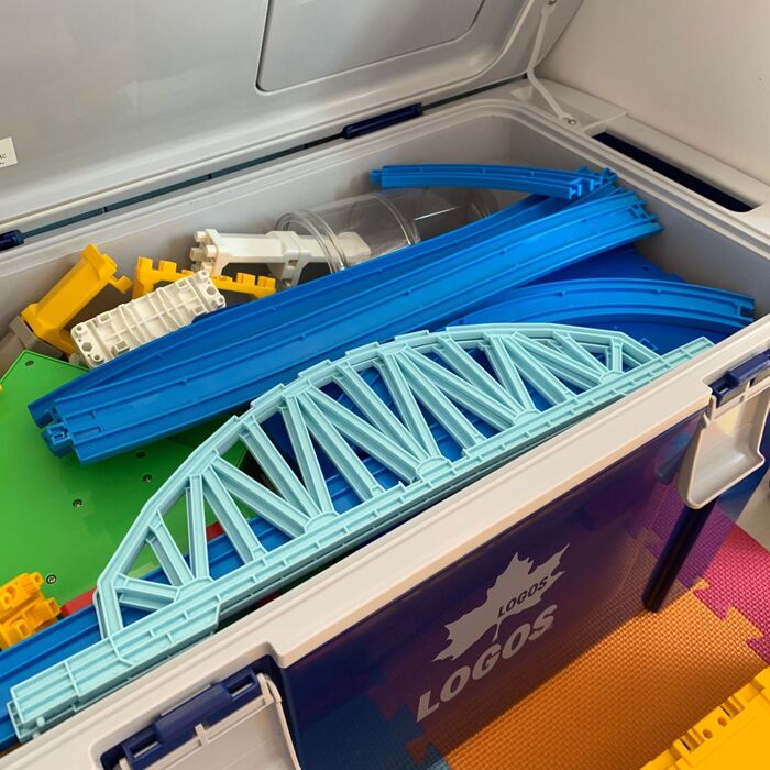 我が家はクーラーボックスを子ども部屋でオモチャ収納に日頃から使っています。