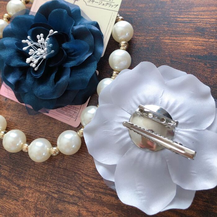 ブローチピンとクリップの2種類の付け方が出来るのが便利で〜晴れの日のお洋服や着物の髪飾りにも素敵ですよ♡