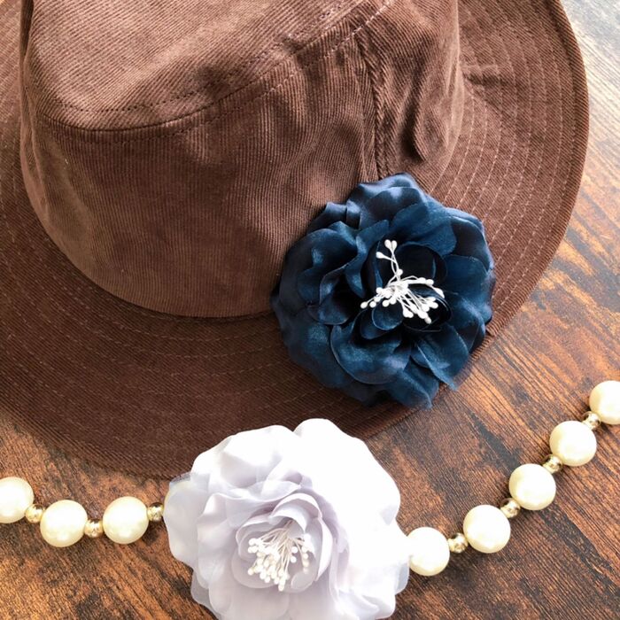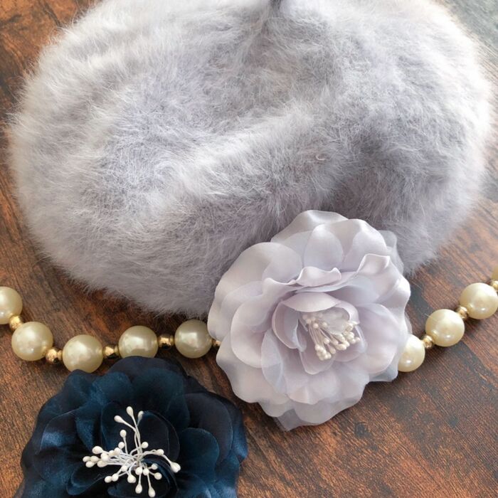アンゴラベレー帽に付けても素敵です。お洋服や気分で色を変えて楽しみましょう♡