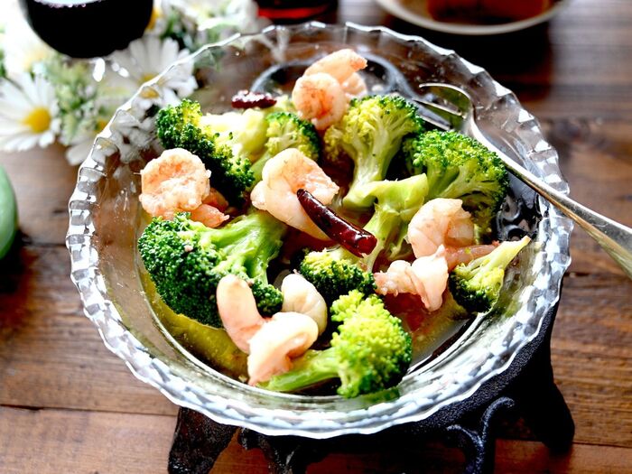 メインは、お手軽食材ブロッコリーに冷凍むきえび。
