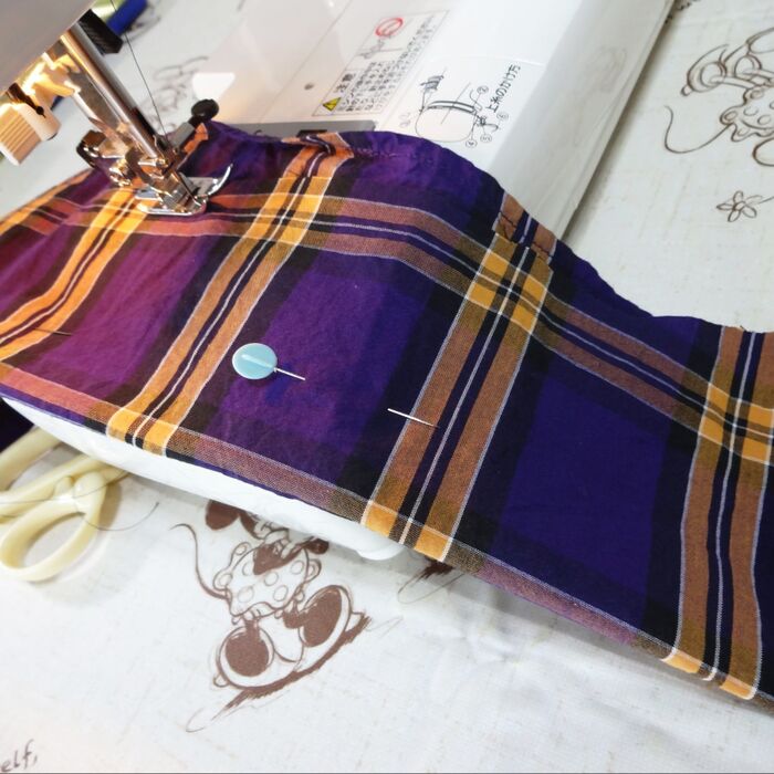 カットした裾部分を三つ折りにして、ミシンで縫います。