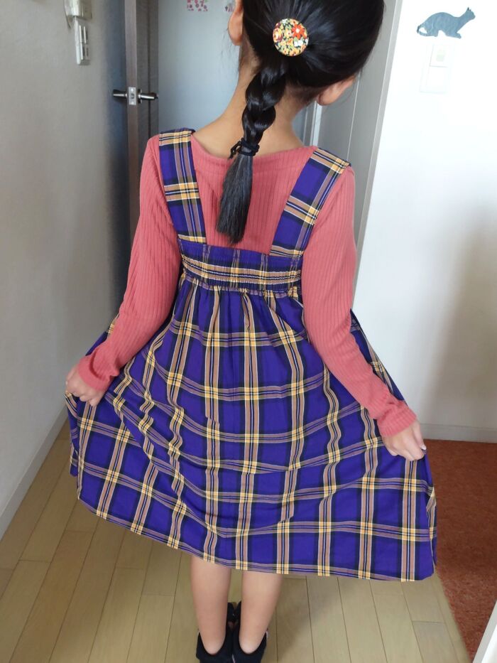 カットした部分は、捨てないで⇒肩紐・リボン部分として活用します('ω')ノ