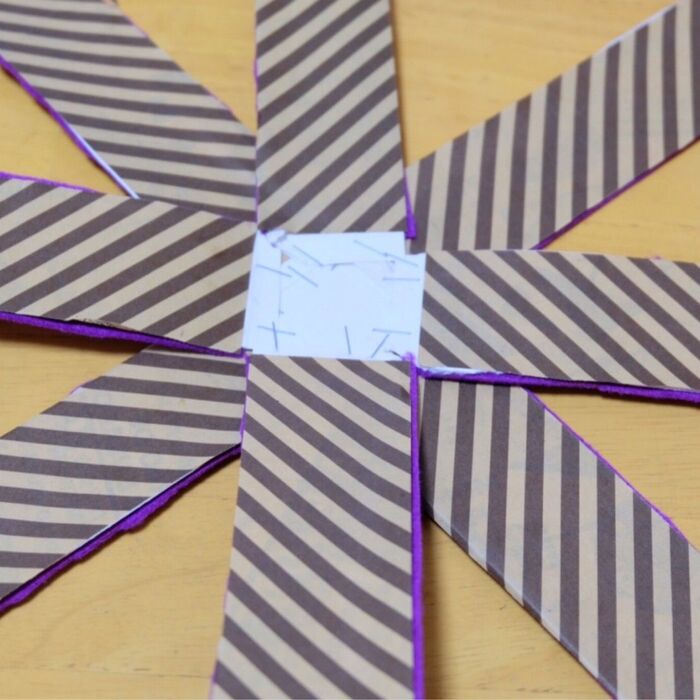 このあと、3.5㎝×3.5㎝の折り紙を貼ってホッチキス部分を隠します。