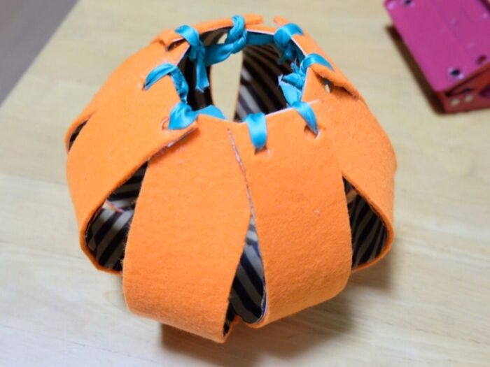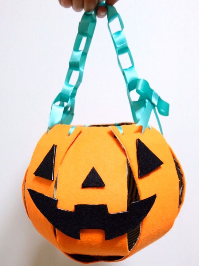 牛乳パックを開いて丸く工作するだけで、かわいいハロウィンバッグが完成しました。