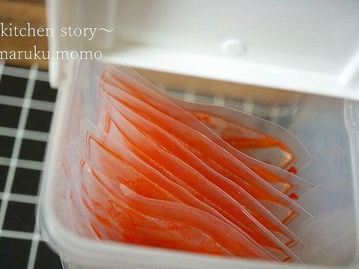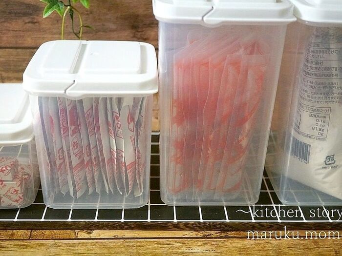 私は直接入れるのがイヤで、食品のパッケージの袋のまま入れ使います。