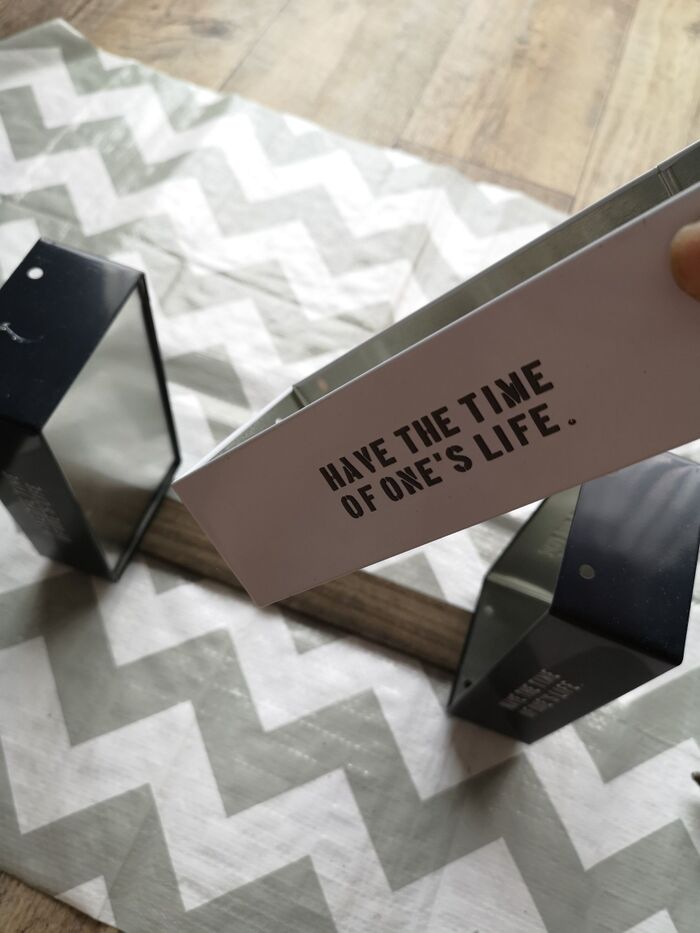 最後に真ん中のブリキトレイをグルーガンで固定します。