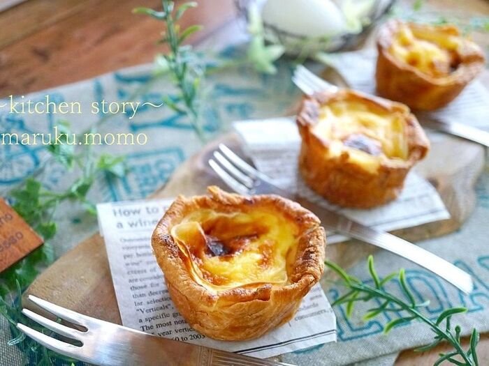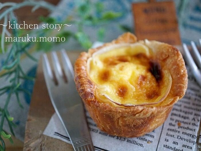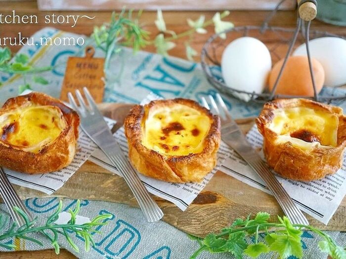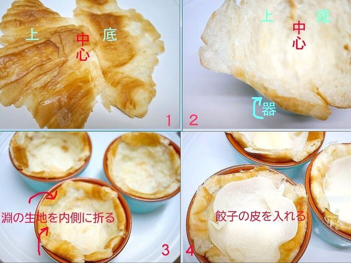 餃子の皮を入れることで卵液がクロワッサン生地に沁みこまずに、