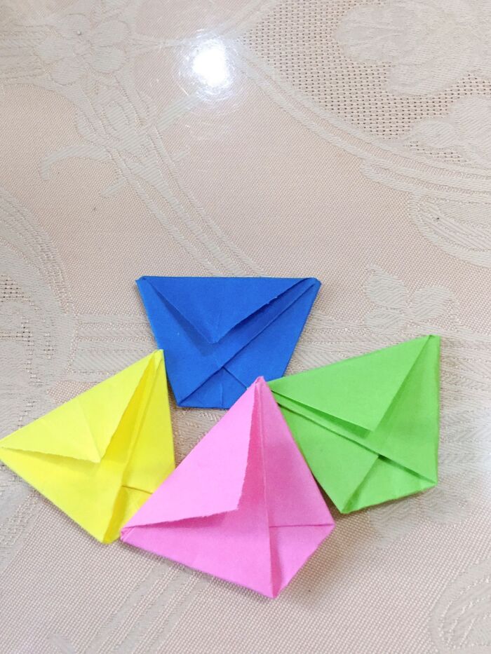 色画用紙を正方形に切りコップを作ります。
