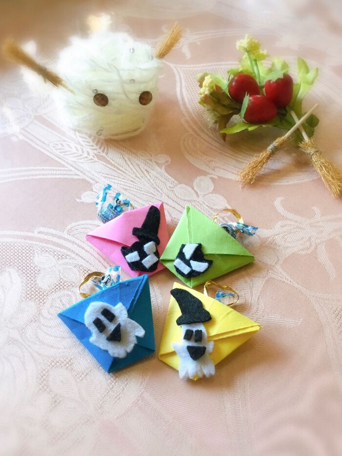 シールフエルトでオバケなどを作ります。