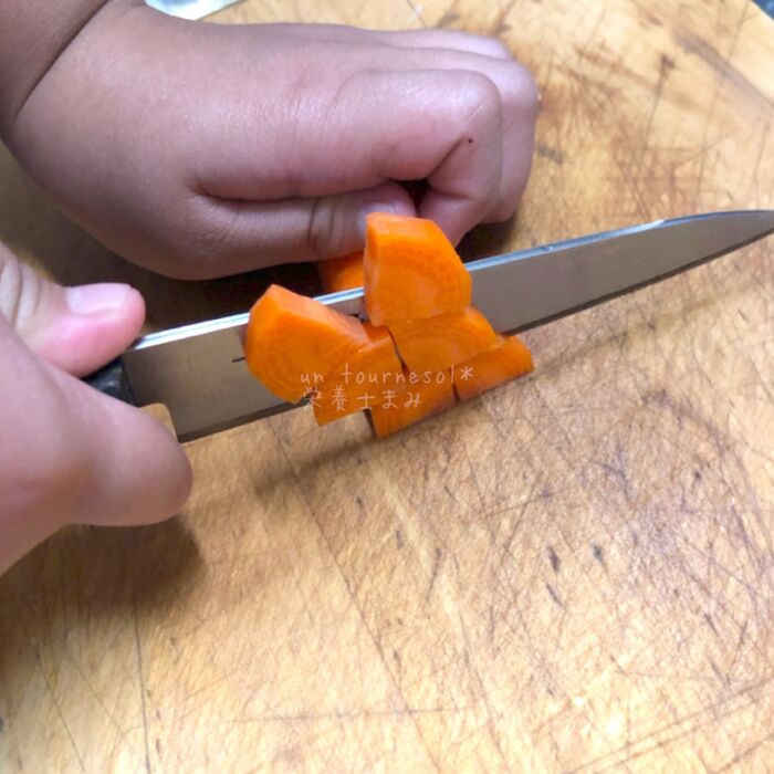 にんじんとキャベツは少し食感が残るぐらい茹でて水気をきり、全部の材料をスプーンでサッと混ぜる。