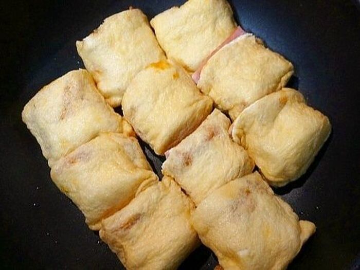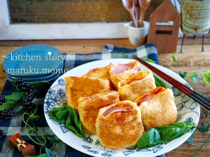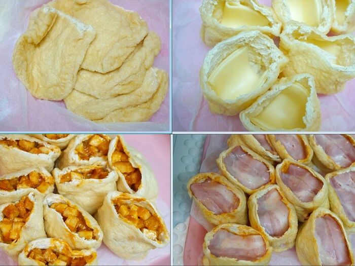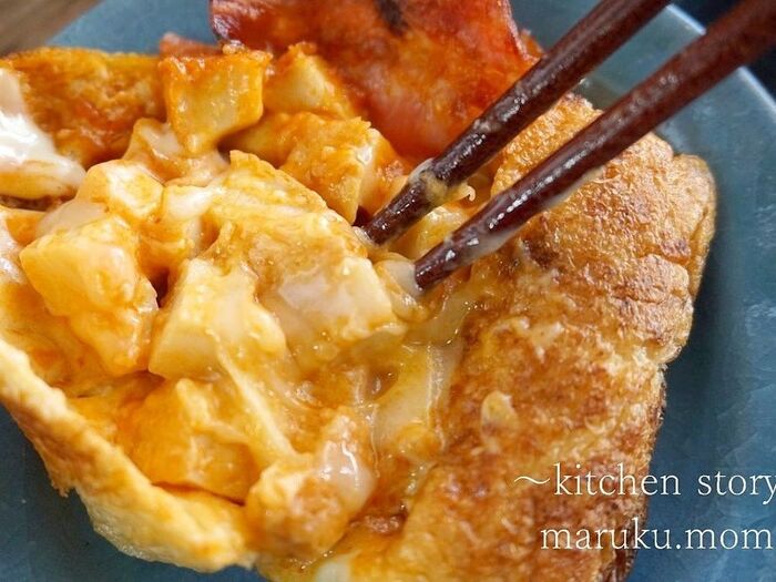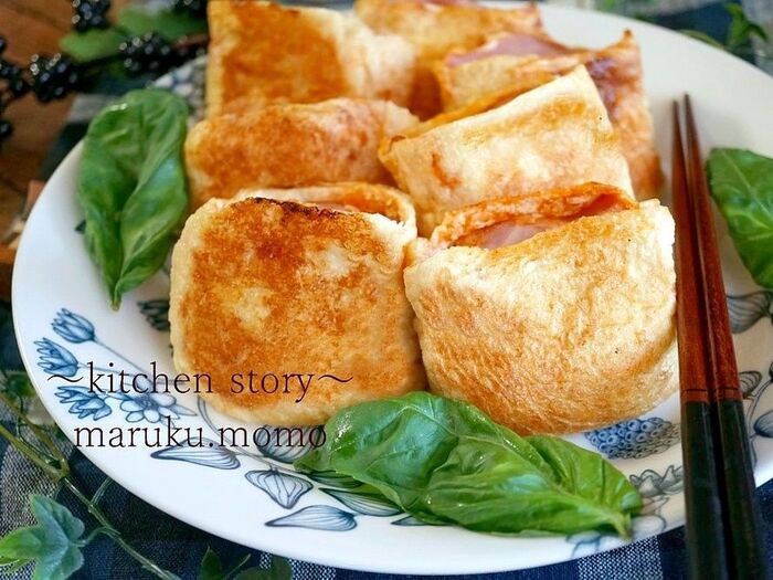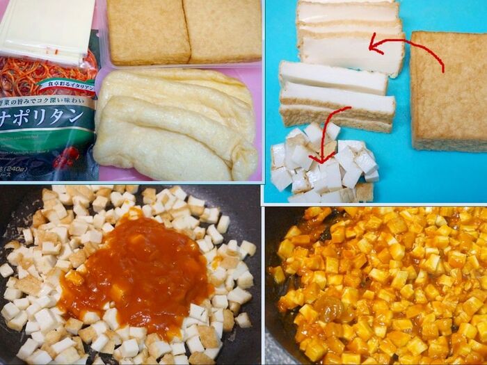 ⑤中に②のナポリタン味の厚揚げを詰め、