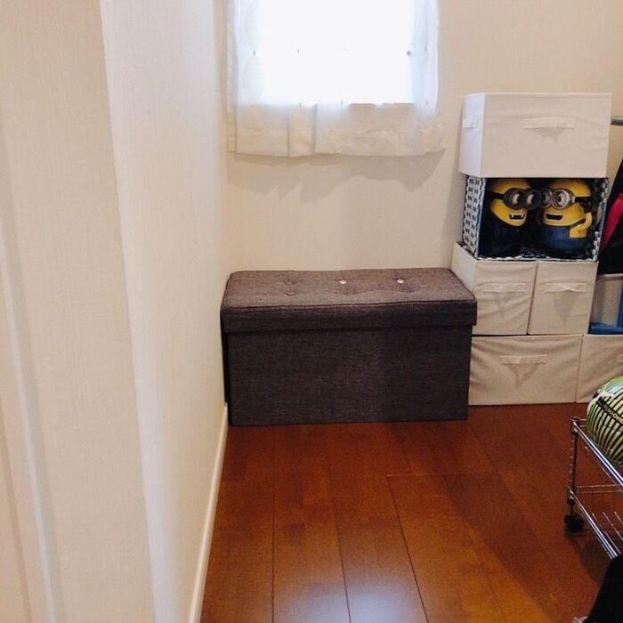 ついでに、普段も使えるおしゃれな収納スツールにしまって、