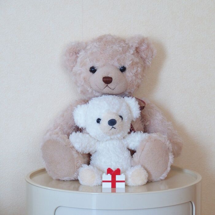 こちらは昨年のクリスマス。レゴで作ったプレゼントを24日の夜に置いて「くまちゃん達もプレゼントもらったってー」と、クリスマスの朝に報告。