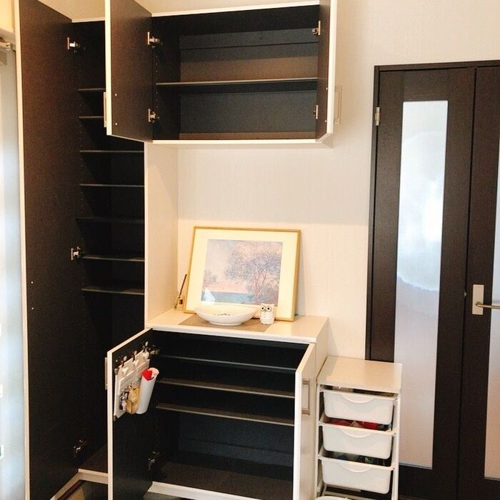 今、土間にはたくさんの靴が並んでいて、シューズクローゼットは、空の状態ですね。
