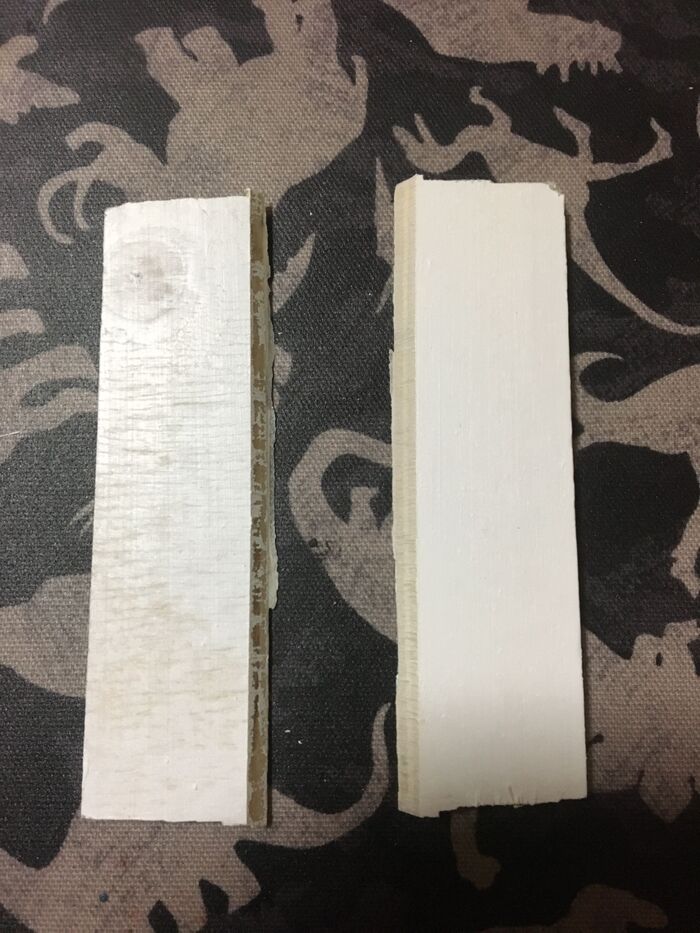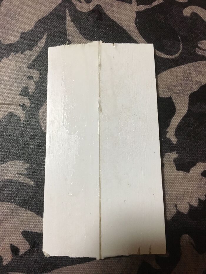 切り口が斜めになってるので、片方を裏返してボンドでつけて1枚の板にします。