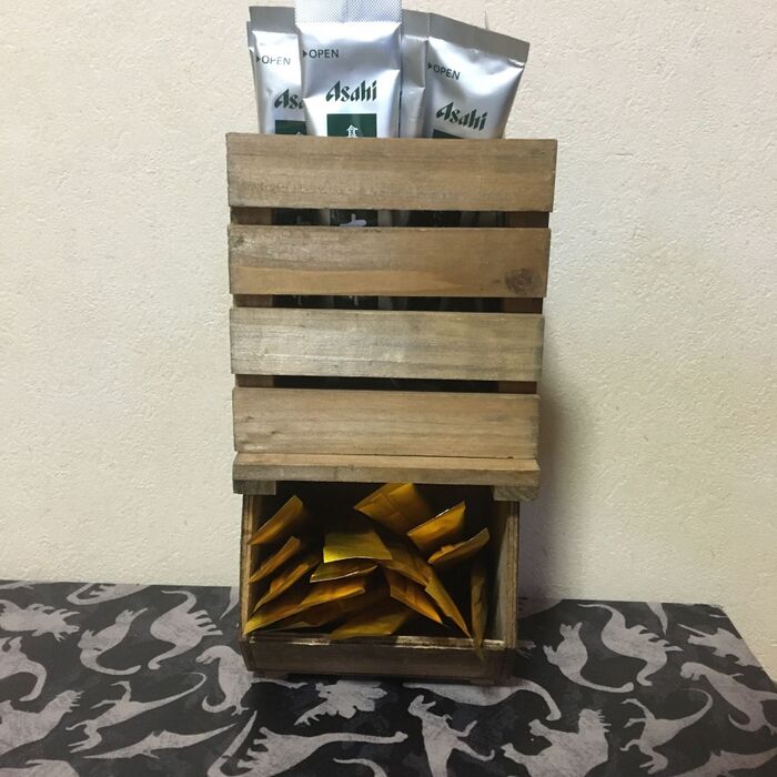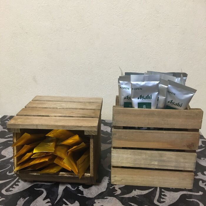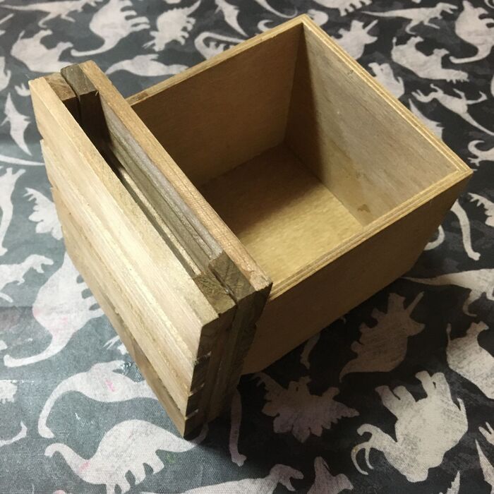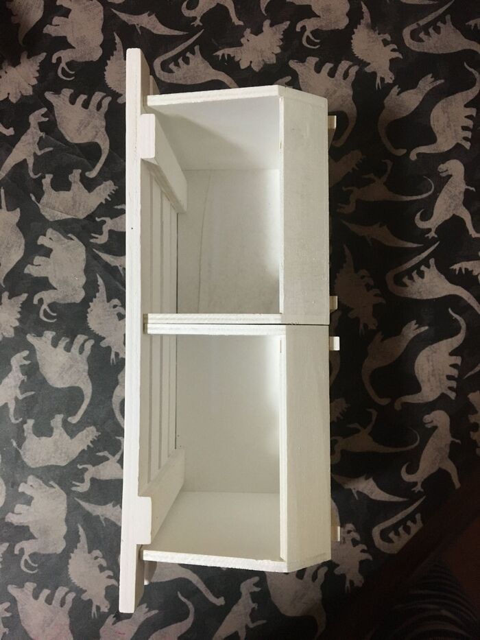 すのこを2枚組み合わせたのをスタッキングボックスにつけてみました。