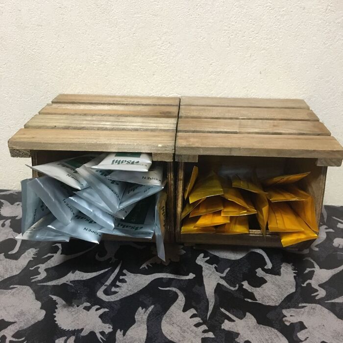 すのこの方に筆記用具、ボックスの方にホチキスやノリやハサミを入れたら使いやすそう。
