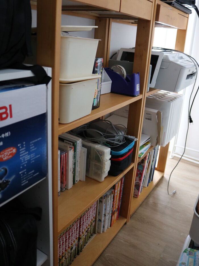 (本棚は子供の学習机のセットになっていたどっしりしたもの。自作したので丁度処分を考えていました)