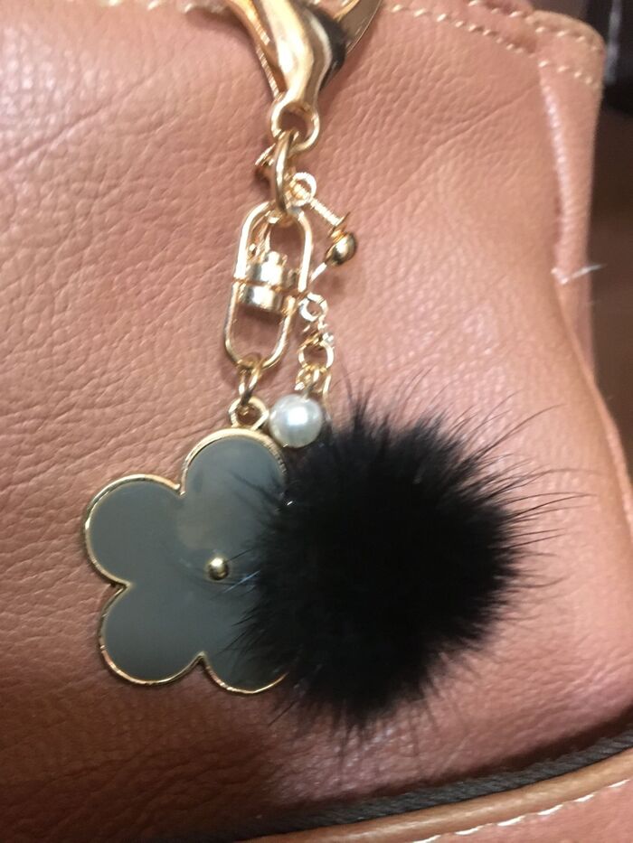 手始めに、分解せずに手持ちのキーホルダーにイヤリングを付けてバッグチャームにしてみました。